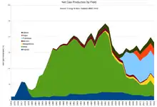La production de gaz a reculé de 2 % en 2017 à 188,8 PJ[z 6].