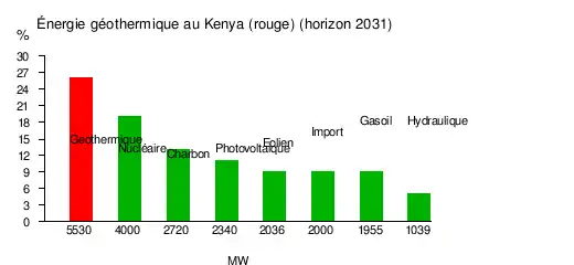 D'ici 2030, le Kenya vise la production de 5 530 MW d'énergie géothermique, soit 51% de la capacité totale[4].