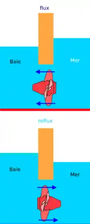 L'énergie marémotrice est issue des mouvements de l'eau créés par les marées et causés par l'effet conjugué des forces de gravitation de la Lune et du Soleil. Elle est utilisée sous forme d'énergie potentielle — grâce à l'élévation du niveau de la mer — ou sous forme d'énergie cinétique — grâce aux courants des marées[1].