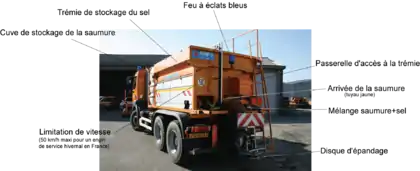 La nature du sel répandu, solide ou liquide (saumure), permet de différencier cinq classes d’épandeuses :