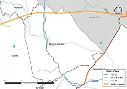 Le réseau hydrographique communal, d'une longueur totale de 9,17 km, comprend un cours d'eau notable, le Chézelles (4,924 km), et trois petits cours d'eau pour certains temporaires[4],[5].