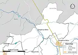 La Dême, d'une longueur totale de 32,5 km, prend sa source à 160 m d'altitude à Monthodon et se jette dans le Loir à Vouvray-sur-Loir, à 47 m d'altitude, après avoir traversé 9 communes[3]. Ce cours d'eau est classé dans la liste 2[Note 1] au titre de l'article L. 214-17 du code de l'environnement sur le Bassin Loire-Bretagne. Du fait de ce classement, tout ouvrage doit être géré, entretenu et équipé selon des règles définies par l'autorité administrative, en concertation avec le propriétaire ou, à défaut, l'exploitant[4]. Sur le plan piscicole, la Dême est classée en première catégorie piscicole. Le groupe biologique dominant est constitué essentiellement de salmonidés (truite, omble chevalier, ombre commun, huchon)[5].