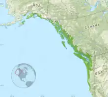L’épicéa de Sitka est présent sur la côte occidentale de l’Amérique du Nord. De l’île de Kodiak (Alaska) jusqu'à Fort Bragg au nord de la Californie[2],[1].