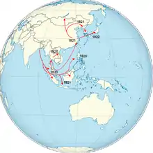 - 1re pandémie (1817-1824) : elle débute à Calcutta et frappe tout l'Extrême-Orient, ainsi que l'Afrique orientale. À partir de 1823, elle touche l'Asie mineure.