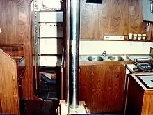 Entrepont d'un navire frigorifique, deux épontilles visibles.