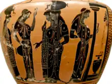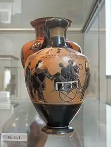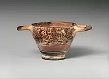 Les cités-États sont dirigées par élite sociale et politique, exerçant un pouvoir oligarchique. Les poètes de l'époque archaïque désignent ses membres par des termes élogieux comme « beaux » (kaloi), « bons » (agathoi), « braves » (esthloi), qui s'opposent au « peuple », démos, les gens du commun, aux « mauvais » (kakoi)[111], les historiens modernes préfèrent « aristocrates », terme formé à partir d'une forme d'organisation politique présente dans les textes antiques, l'aristocratie, le « pouvoir des meilleurs », mais qui désigne cette fois-ci un groupe social occupant le sommet de la société des cités, les « meilleurs » (aristoi)[112]. Ils sont généralement définis par leur richesse et le fait qu'ils se transmettent leur rang de façon héréditaire, les notions de naissance et de famille (genos) étant très importantes pour ce groupe, également leurs valeurs, telles que la vertu (aretê), leur mode de vie raffiné. Une approche récente insiste plus sur les questions de prestige, de rivalité et d'émulation au sein de ce groupe qui doit en bonne partie sa position à la reconnaissance sociale dont il bénéficie, et qu'il doit sans cesse réactiver par la démonstration de sa richesse et de sa vertu. Cela implique également l'existence de mobilités sociales. Chaque aristocrate doit régulièrement rappeler à sa communauté qu'il fait bien partie des « meilleurs »[113]. D'autres ont cherché à déceler dans l'art, les pratiques funéraires et la poésie lyrique de la période une opposition entre deux tendances au sein de l'élite, qui se livreraient une sorte de guerre culturelle : une approche « élitiste » chez laquelle le goût pour le luxe et la distinction est plus prononcé, valorisant les héros du passé, les modes orientalisantes et l'ouverture sur tout ce qui est au-delà de la cité, où la naissance et le statut garantissent la position dominante des aristocrates, tout cela justifiant et pérennisant la position subordonnée du reste de la population ; une approche plus égalitariste, « moyennisante » (middling en anglais), centrée sur le contexte local, la polis, privilégiant des corps politiques plus larges, dénigrant le goût du luxe et cherchant à promulguer des lois somptuaires pour limiter les ostentations des élites[114],[115].