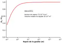 dans laquelle est la pression de vapeur saturante, est la tension de surface, est le volume molaire du liquide, est la Constante universelle des gaz parfaits et est la température.