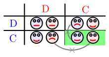 Considérons, par exemple, un jeu où deux joueurs choisissent simultanément un nombre de 2 à 12. Le joueur qui a annoncé le plus petit nombre le remporte, l'autre joueur gagne la même chose moins deux. En cas d'égalité, les deux joueurs remportent leur nombre et subissent une pénalité de deux.