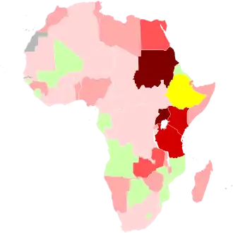 L'évolution est sensiblement la même au classement continental. Si le bilan en 2001 est aussi le plus bas, avec un 40e rang sur le continent africain, c'est en 2006 que l'Éthiopie a occupé sa meilleure place, avec une 21e position en Afrique.