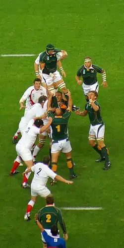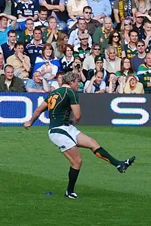 En 2006, après deux victoires contre l'Écosse, la situation dégénère pour les Springboks avec cinq défaites successives : une à domicile contre la France, qui met fin à une longue invincibilité à domicile, une autre par 49-0 à Brisbane contre les Wallabies[98], et trois autres défaites dans le Tri-nations. Les Sud-Africains relèvent la tête ensuite en battant les All Blacks et les Wallabies. Leur tournée d'automne en Europe s'achève sur une victoire 25-14 en Angleterre après une première défaite contre ces mêmes Anglais et une défaite en début de tournée contre les Irlandais.