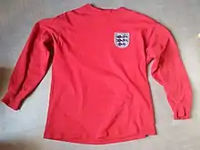 Les couleurs de la tenue extérieure de l'équipe d'Angleterre sont constituées de maillots rouges, de shorts blancs et de bas rouges, cette tenue extérieure n'a pas été nécessaire avant que l'équipe d'Angleterre ne rencontre des équipes en dehors du Royaume-Uni. De 1945 à 1952, l'Angleterre porte une tenue extérieure entièrement bleue. En 1996, le maillot extérieur de l'Angleterre est changé pour une tenue comprenant des maillots, des shorts et des bas gris[62]. Cette tenue est portée contre la Bulgarie, l'Allemagne et la Géorgie mais l'abandon du traditionnel rouge se révèle impopulaire parmi les supporters et depuis lors la tenue extérieure est restée rouge. Cette tenue extérieure est parfois utilisée pour les matchs à domicile.