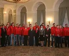 La sélection polonaire avec le président Lech Kaczynski (Palais présidentiel, 5 février 2007)