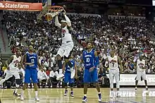 L'équipe nationale (en bleu) lors d'une rencontre d'exhibition contre les États-Unis en 2012
