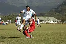 James Lepaio à l'entrée de la surface de réparation contre les Samoa américaines.