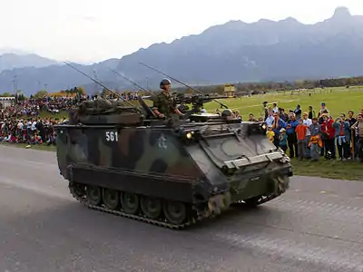 | Chars de grenadiers M113 | Véhicule blindé de transport de troupes | États-Unis Suisse |