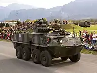 | Chars de grenadiers à roues Piranha | Véhicule blindé de transport de troupes Mowag Piranha I, II, III | Suisse | Char de grenadiers à roues 93 Chasseur de chars 90 |