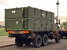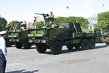 Camion lourd porteur 6X6 non protégé porte shelter équipé d'un système qui permet, en liaison avec l'armée de l'Air et de l'Espace, de commander la composante sol-air mais également de coordonner l'utilisation de la troisième dimension par les autres intervenants de l'armée de Terre (artillerie, sol-sol, hélicoptères, drones) | ?