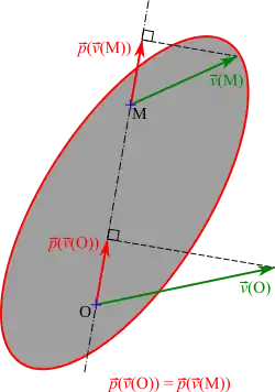 Si l'on considère un champ de vecteurs , parfois appelés « moments », alors par définition, le champ de vecteurs moment est équiprojectif si pour deux points quelconques P et Q :