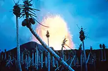 Fontaines de lave au-dessus de papayers au début de l'éruption. | |