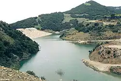 Vue du réservoir Ntaska à proximité des villages d'Erymantheia et Velimachi, région de Tritaia, Achaïe, Grèce