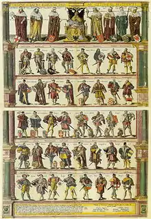 La typologie des états impériaux se fixa lentement, de la Bulle d'or de 1356, qui définit les privilèges des princes-électeurs, au recès de la diète d'Augsbourg de 1582, qui confère voix délibérative aux villes d'Empire. Les principales distinctions étaient les suivantes :