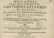 Étienne Moulinié[1] est un compositeur français de la période baroque né le à Lauran (devenu Laure-Minervois), à proximité de Carcassonne, et mort entre février et novembre 1676.