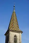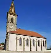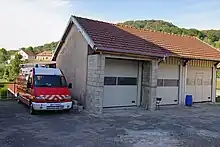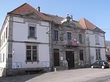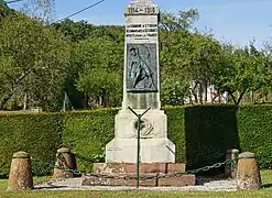 ![]() ![]() ![]() De haut en bas et de gauche à droite : la mairie, le monument aux morts et la butte surplombant le village et son temple. |