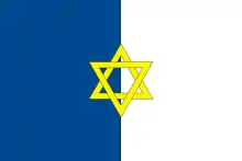 L'un des anciens drapeaux de la Palestine mandataire, à partir de 1924, et utilisé par le Yishouv[47], est orné d'une étoile jaune à six branches[48],[49], avant que l'État d'Israël n'adopte son drapeau actuel en 1948[50].