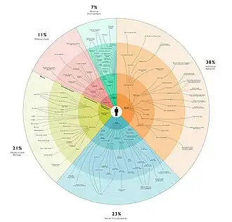 Le gradient social de santé[19] révélé par les Whitehall studies se confirme pour diverses maladies: maladies cardiovasculaires, certains cancers et maladies pulmonaires chroniques, maladies gastro-intestinales, dépression, suicide, absentéisme pour cause de maladie, maux de dos et malaises généraux. Un défi majeur est de comprendre les causes de cette distribution sociale de tant de troubles de santé.