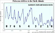 Huit évènements de Bond ont d'abord été identifiés durant l'Holocène, pour lesquels on a proposé un cycle d'environ 1 500 ans. Puis on a ramené le cycle à environ 1 000 ans[3],[10]. La matérialité de ces évènements et leurs conséquences éventuelles sur le climat global ont été discutés.