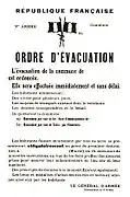 Cette évacuation doit se dérouler en trois temps. Dans un premier temps les populations sont dirigées vers des centres de recueil, en arrière du front, avant d'être envoyées en convois ferroviaires vers des départements de l'intérieur (sites de correspondance) et finalement être transportées vers leurs communes d'accueils. En dehors de quelques personnes jugées indispensables, et de celles réquisitionnées (maires, conseillers municipaux, policiers, gardes-champêtres, pompiers...) pour éviter les pillages et s'occuper du bétail, tous les habitants devront être évacués.