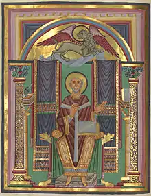 Outre l'écriture, l'enluminure du livre commence dans les douze pages de canons de concordances écrites en lettres d'or et décorées de motifs architecturaux et de médaillons représentant les évangélistes. Suivent les évangiles, qui sont tous précédés d'un portrait de l'évangéliste en pleine page, représentés assis dans un décor architectural d'or et de pourpre, tenant une plume à la main. Les débuts de chapitre sont marqués par de grandes lettrines faites d'or, de vert, et de pourpre[1].