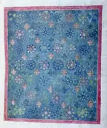 - f5r et 12r : deux pages imitant des textiles, avec des motifs différents (de vraies soies orientales des IXe et Xe siècles sont utilisées comme pages de garde).