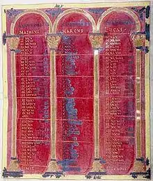 - (en) Cet article est partiellement ou en totalité issu de l’article de Wikipédia en anglais intitulé « Lindau Gospels » (voir la liste des auteurs).