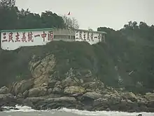 - Le mur du slogan "Trois principes qui unissent le peuple chinois" est situé au nord de l'île.