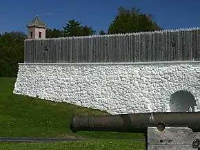 Le fort Mackinac est construit pour défendre l'île, alors aux mains des Britanniques, des attaques françaises et amérindiennes durant la guerre d'indépendance des États-Unis mais celui-ci ne sera jamais attaqué. La région est officiellement rattachée aux États-Unis par le traité de Paris en 1783. Les forces britanniques ne quittent pourtant le fort qu'après le traité de Jay, entré en vigueur en 1794, qui cède aux États-Unis tout le territoire du Nord-ouest[18]. Cependant, lors de la première bataille de l'île Mackinac de la guerre de 1812, les Britanniques reprennent par surprise le fort aux Américains qui n'ont pas été prévenus du début du conflit. Pour renforcer les défenses de l'île, les Britanniques construisent le fort George sur les hauteurs au nord du fort Mackinac. En 1814, le nord de l'île est à nouveau le théâtre de combats entre Américains et Britanniques lors de la seconde bataille de l'île Mackinac mais les Américains ne parviennent pas à reprendre le contrôle des forts et de l'île.