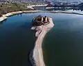 Vue aérienne du chemin et de l'île en mars 2021