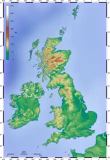 | Point culminant | Ben Nevis (1 345 m sur Grande-Bretagne) | |