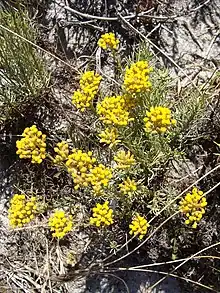 L'Immortelle d'Italie (Helichrysum italicum) est une plante à fleurs méditerranéenne, présente sur les Îles Cies .