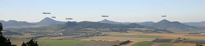 České Středohoří est essentiellement basaltique ; on peut y observer des cônes volcaniques[1].