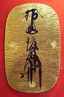 Le ōban (大判) était la plus forte unité, évaluée à 10 ryōs. Ici, un ōban de l'ère Keichō émis en 1601.