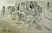 Le commerce semble avoir commencé dans la première moitié du XVIIe siècle. Les sujets bouddhistes ayant un but religieux protecteur étaient les plus communs au début ; des thèmes du folklore se sont ajoutés et ont fini par prévaloir. Au cours du XVIIIe siècle, les illustrations ont acquis un but didactique moral et un texte explicatif est introduit sur l'image. Souvent, cependant, il y avait un aspect satirique : les démons étaient dépeints comme des moines faisant l'aumône ou prenant un bain ; avec un commentaire portant l'inscription « Nombre d'entre eux se lavent le corps mais pas l'esprit »[2]. Après l’affaiblissement du commerce routier et avec l’émergence des voyages en train, le style a persisté localement, mais il connaît un certain un renouveau au début des années 2000[3].