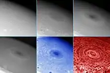 La NASA a signalé en novembre 2006 que la sonde spatiale Cassini avait observé une tempête au pôle sud de Saturne qui avait toutes les caractéristiques d’un cyclone tropical, dont un œil. La présence d’un mur d’œil n’avait jamais été relevé sur aucune autre planète que la Terre. Même dans l’immense Grande Tache rouge de Jupiter, on n’a pas observé ce phénomène lors de la mission Galileo[31].