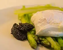 L'œuf en gelée, autrefois œuf à l'aspic[45], est un œuf poché. Gustave Garlin (1838) donne un Petits Aspics d’Œufs pochés aux Truffes[46]. L'œuf poché froid Cultivateur est un œuf poché en gelée posé sur une salade de pomme de terre[47]. A . Bautte donne de nombreuses variantes au homard, à la langouste[47].