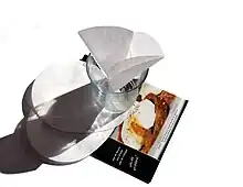 Pour les sac à pocher, il existe divers pochoirs ou pocheuse à œufs en forme de poche[34], de cuillère[35], de moule, souvent en silicone ou en tamis d'acier avec couvercle silicone[36] dans lesquels on casse l'œuf qui est maintenu une fois dans le liquide. Le blanc reste resserré autour du jaune. Les sachets à pocher les œufs coniques en papier renforcé permettent une cuisson facile avec un contact avec le liquide mais donnent des œufs curieux en forme de fond de sachet[37]. Une poche de film alimentaire résistant à la chaleur et huilé évite de même la dispersion du blanc dans l'eau mais la cuisson se fait sans contact avec le liquide[38]. Les pocheuses à œufs à moules individuels avec cuisson à la vapeur donnent des œufs pochés compacts mais sans contact entre l'œuf et le liquide de cuisson.