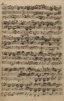 | BWV 596 | Concerto n°5 | Ré mineur | allegro — grave — fuga, largo e spiccato — finale allegro | Adaptation du concerto grosso (RV 565) d'Antonio Vivaldi, parfois considéré comme le plus réussi des concertos[61]Un manuscrit du XVIIIe siècle , conservé à la Bibliothèque d'État de Berlin, attribue cette transcription à Wilhelm Friedemann Bach[62]. |