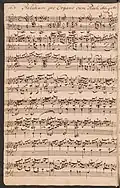 | BWV 534 | Prélude et fugue | Fa mineur | Son attribution à Jean-Sébastien Bach serait douteuse[15]. Les analystes qui l'attribuent au cantor situent sa composition entre 1708 et 1717, mais plus probablement en 1716 à Weimar. L'œuvre est dotée d'un caractère tragique où la personnalité du compositeur transparaît et se dégage de l'influence nord-allemande, préfigurant les BWV 546 (en) et 548 (en), notamment dans le Prélude, qui évoque l'inéluctabilité de la mort. La Fugue, quant à elle, est écrite à cinq voix et reprend en partie le propos du Prélude, duquel émerge à la fin de l'œuvre un thème plus rythmique et harmonique[16]. | ||