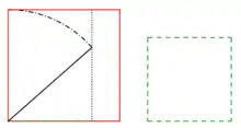 - le carré ayant pour côté le segment d'extrémités le point d'intersection et l'extrémité de la longueur située sur le même côté que le point autour duquel on a pivoté a alors la propriété voulue.
