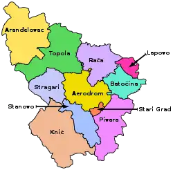 Les villes les plus importantes de la Šumadija, on peut citer :
