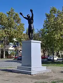 Le maire de la commune a fait installer dans le village une statue de Rocky Balboa[11].
